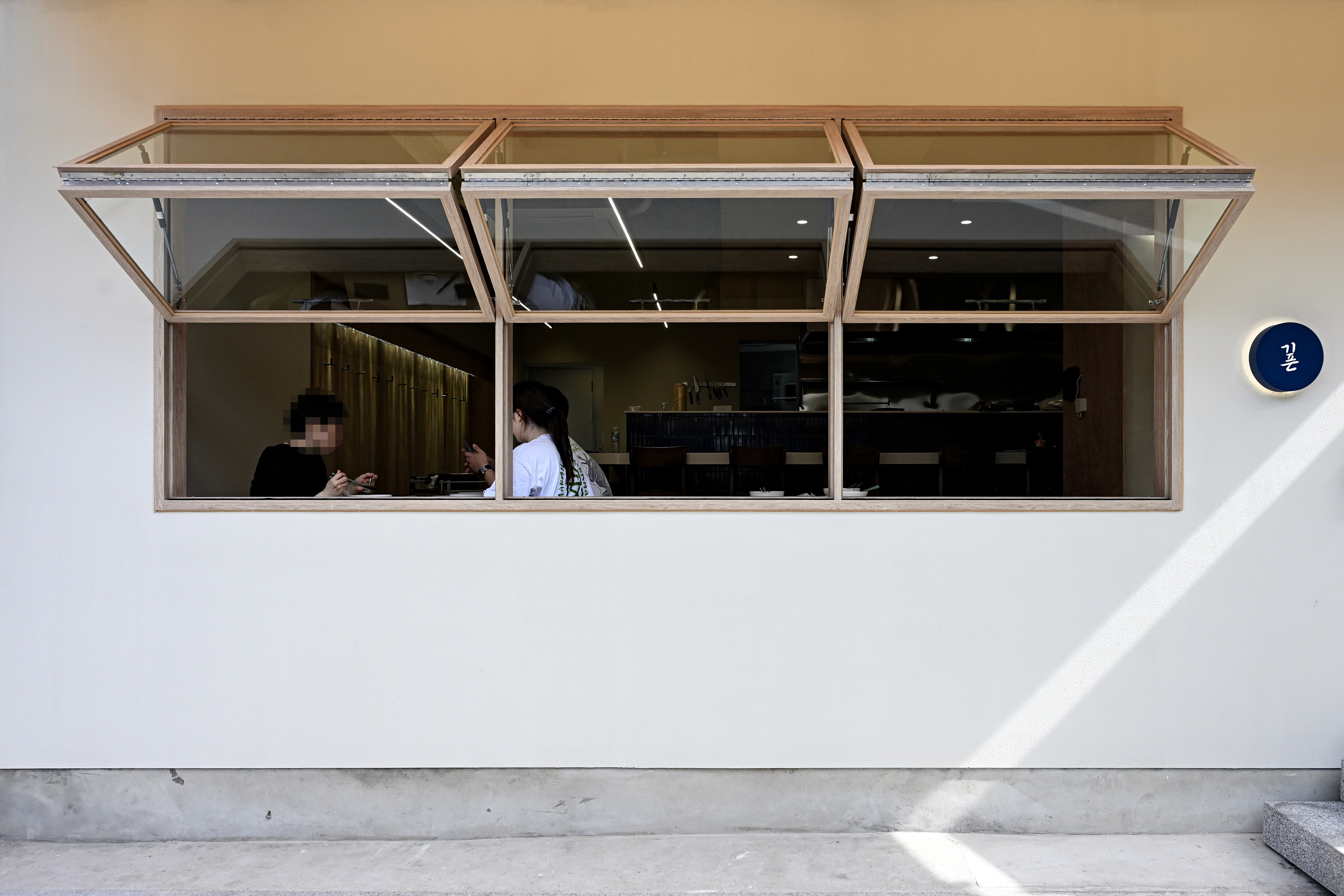 높이가 서로 다른 두 천장을 통해 내외부 사이 중간영역을 만들었다.