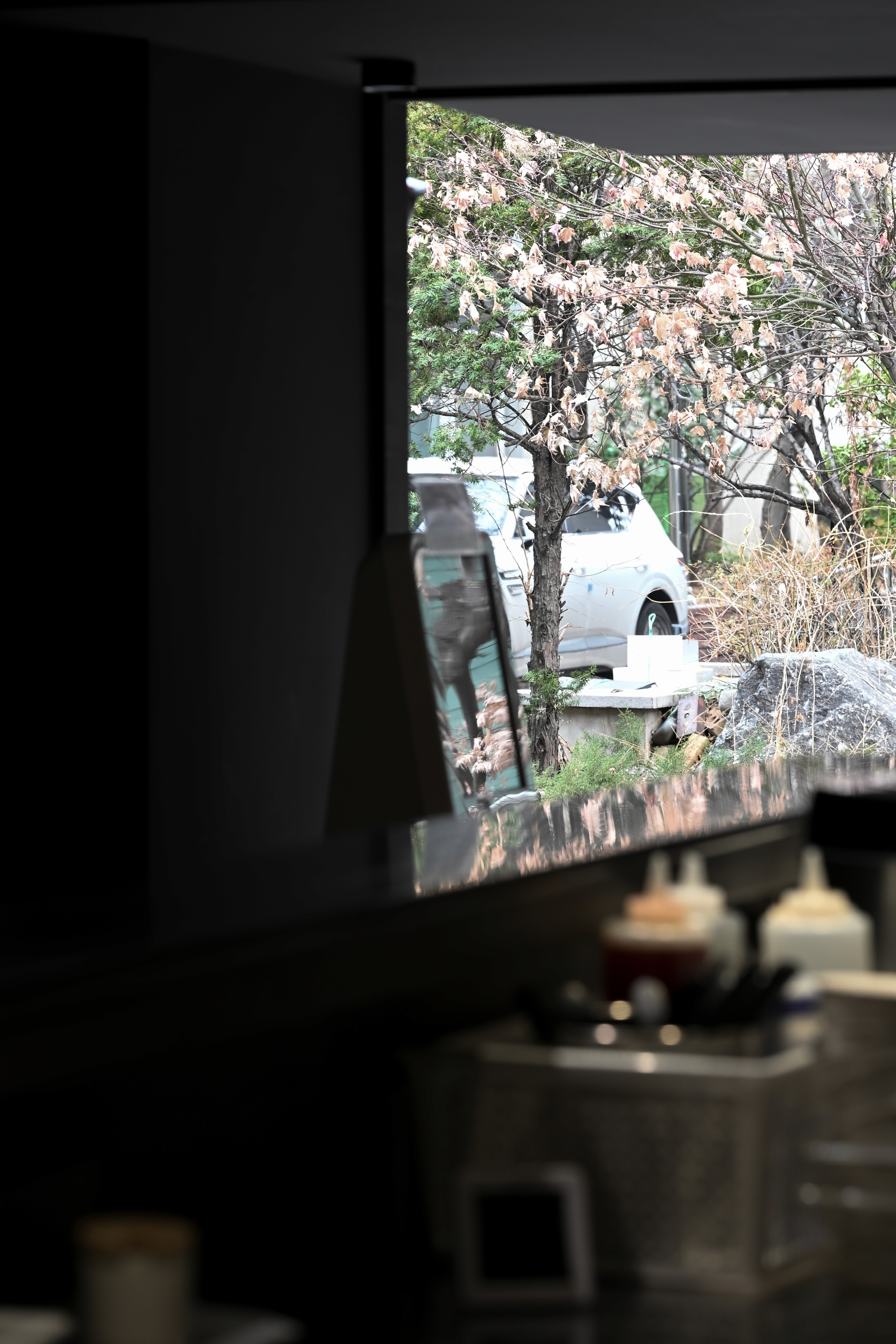주방과 손님공간의 배치는 일반적이다. 바테이블 형태의 좌석과 테이블의