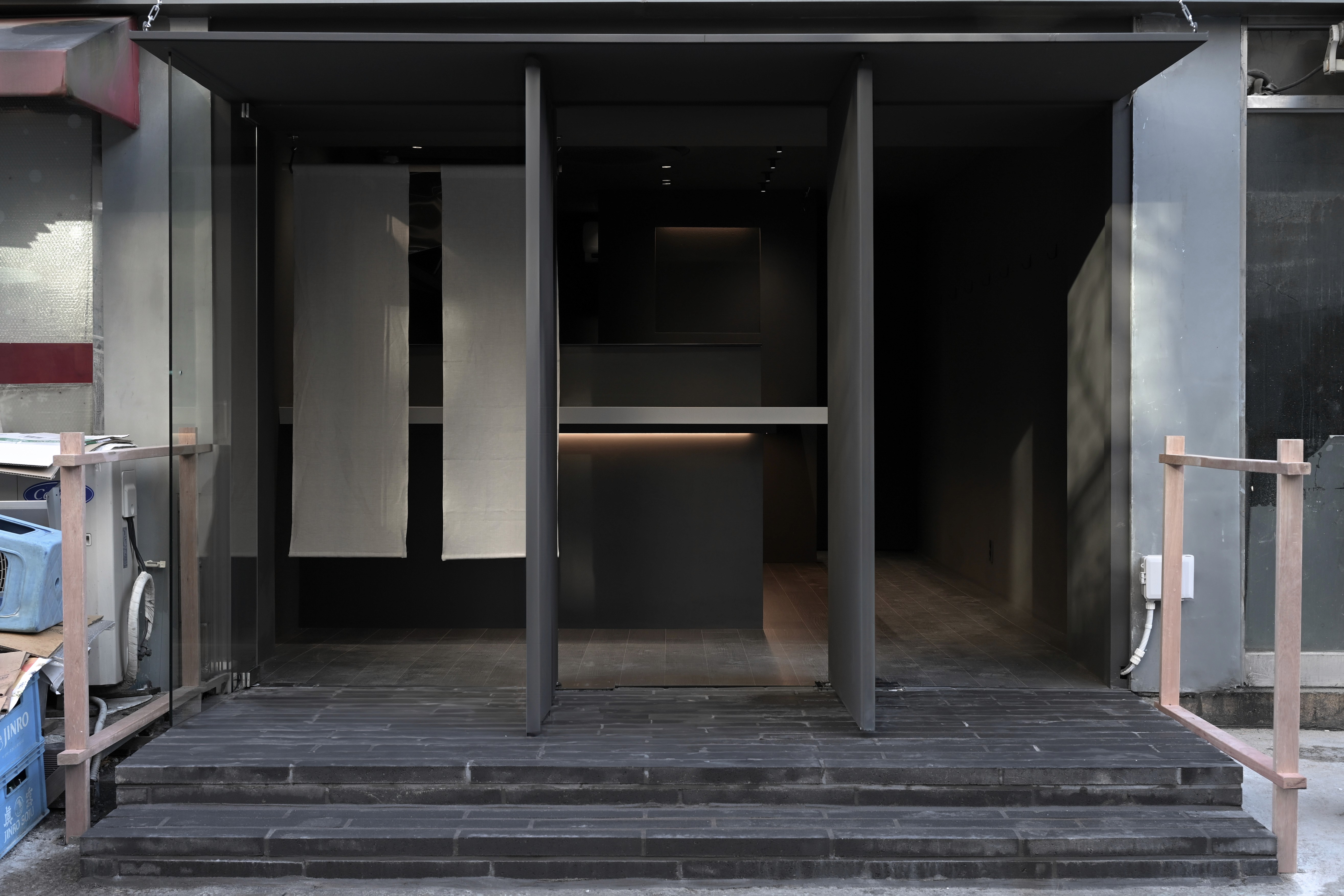 내외부를 관통해서 이어지는 금속 처마는 손님들이 대기하는 공간을