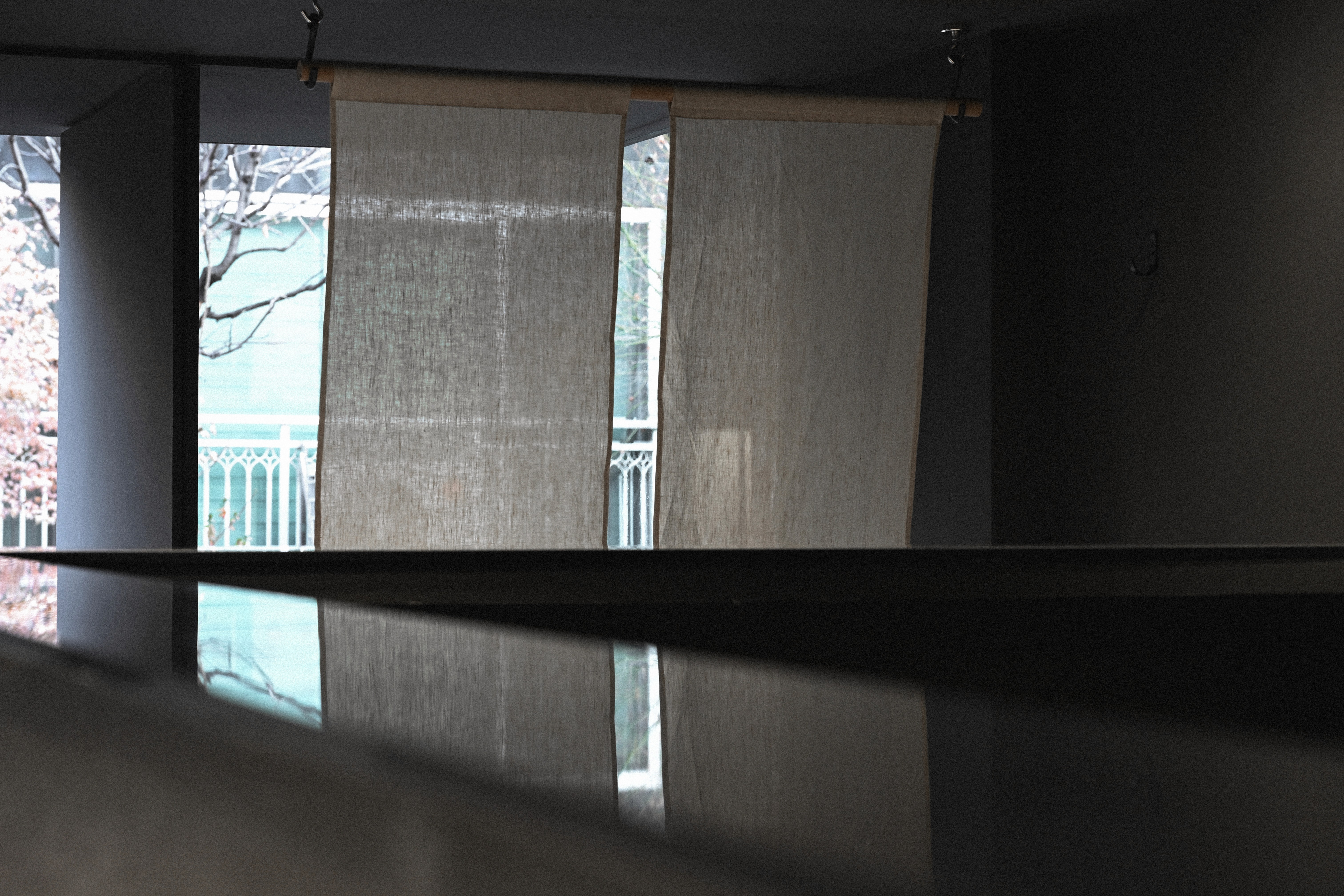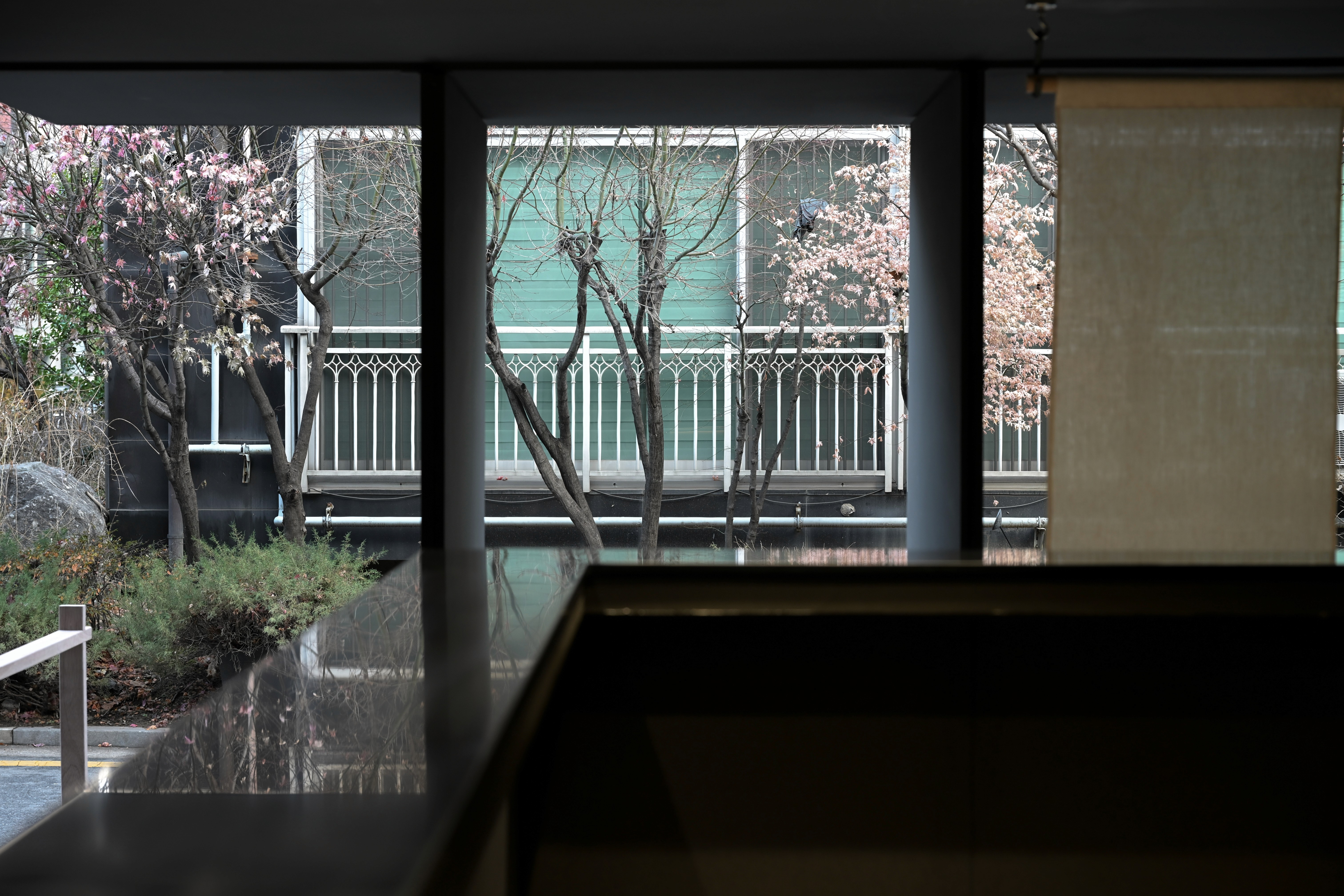 문과 처마가 만들어내는 그리드 안에 길건너 나무가 담기면서 그림과